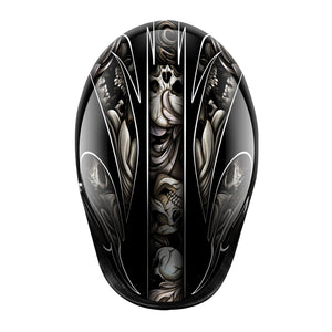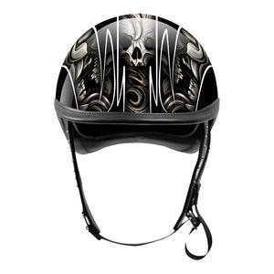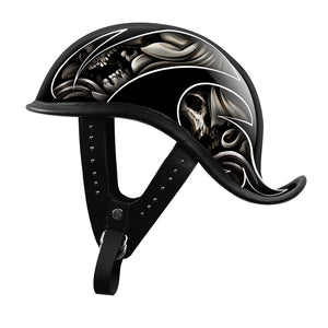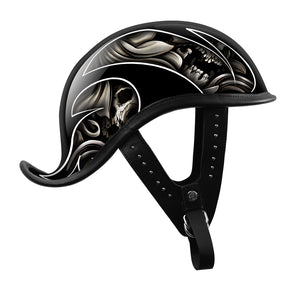 BikerStore Custom Painted Carbon Fiber Half Motorcycle Helmet with Leather Trim for Harley Riders