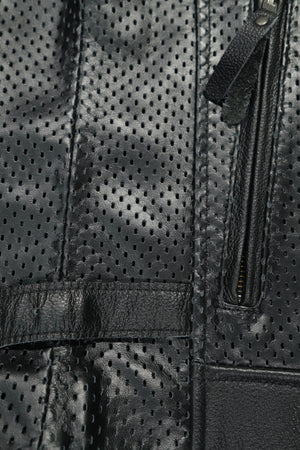 Our Motorcycle Club Leather Vest, product code BS005, is a top choice for riders seeking both quality and customization. Made from perforated top-layer cowhide, this vest is not only durable but also comfortable and breathable, perfect for Malaysia’s warm climate. The vest’s main fabric composition is 100% genuine cowhide, ensuring a premium feel and long-lasting wear.