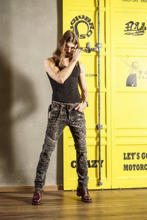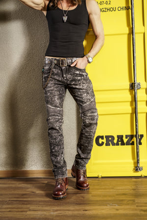 - Description:. The waist adopts 3D three-dimensional cutting technology and elastic pleating technology. Close to the body. Improve flexibility. The knee area adopts elastic pleating technology. Make leg movements more comfortable. Use waterproof fabric. Can block rain for a short time. Use IDEAL Italian leather zipper. Exquisite buttons and neat hemming. The knee is equipped with CE safety certified protective gear. Use heavy-duty high-intensity washing technology. This pair of pants is wear-resistant. Fall-proof. Slim fit