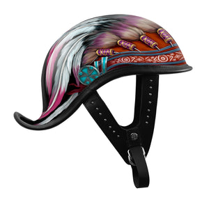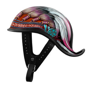 BikerStore Handcrafted Carbon Fiber Half Helmet with Leather Trim for Retro Harley Bikers
