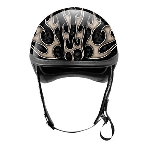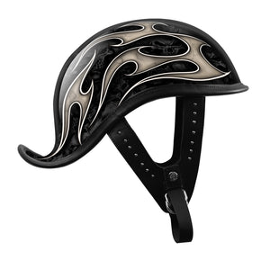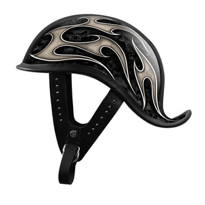 BikerStore Handcrafted Carbon Fiber Half Helmet with Leather Trim for Retro Harley Riders