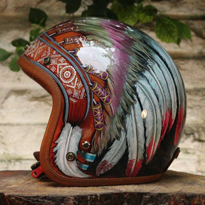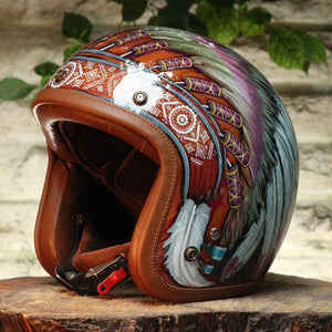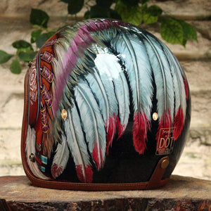 BikerStore-Ironking helmet: Custom Indian Feather Design 3/4 Motorcycle Helmet