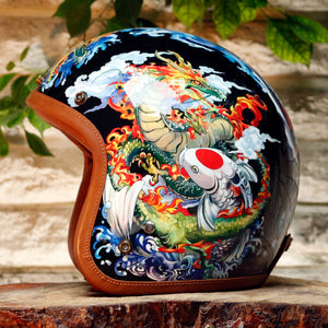 BikerStore-Ironking helmet: Custom Painted Retro 3/4 Motorcycle Helmet in Fiberglass or Carbon Fiber