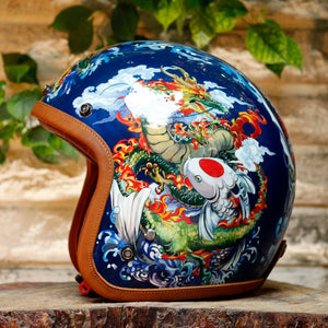 BikerStore-Ironking helmet: Custom Retro 3/4 Motorcycle Helmet in Fiberglass Shell