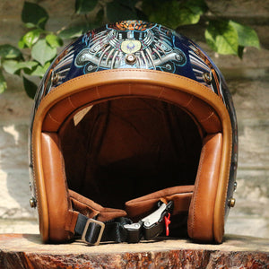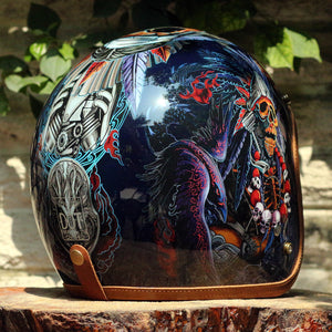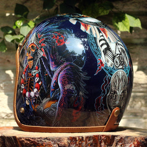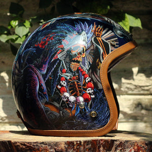 BikerStore-Ironking helmet: Handcrafted Retro 3/4 Motorcycle Helmet with Leather Trim and Custom Paint