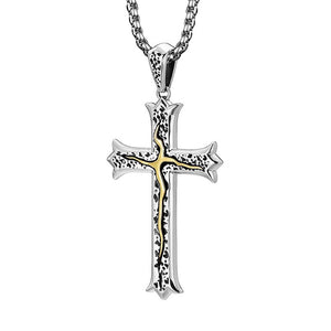 BikerStore Men's Sterling Silver & Brass Cross Necklace - Handcrafted for Harley Riders