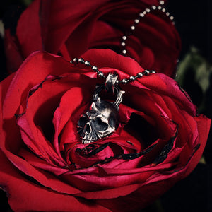 BikerStore Original Design S925 Pure Silver Skull Rose Pendant Necklace