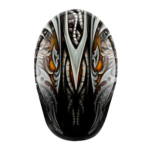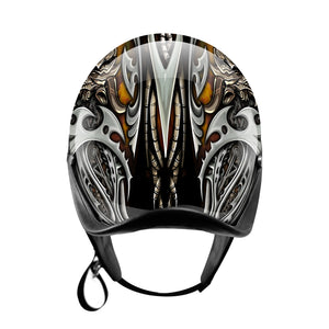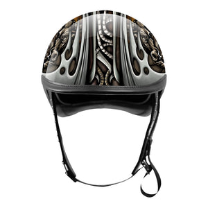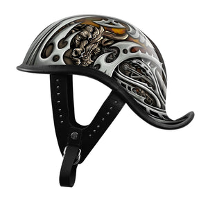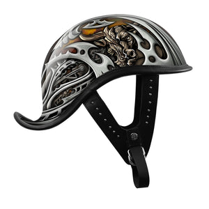 BikerStore Painted Carbon Fiber Half Helmet with Leather Trim for Harley Motorcycle Bikers