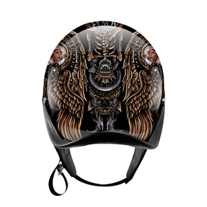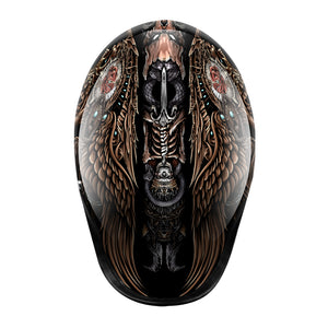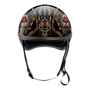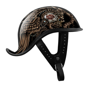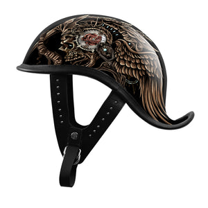 BikerStore Painted Carbon Fiber Half Helmet with Leather Trim for Harley Retro Riders