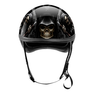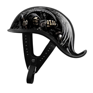 BikerStore Painted Carbon Fiber Half Helmet with Leather Trim for Retro Harley Bikers