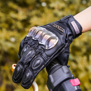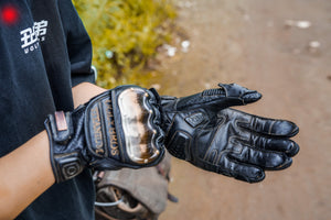 Safety is paramount, and our gloves offer top-notch protection without compromising on style. The knuckle area is reinforced with a titanium alloy protective shell, while the finger joints feature carbon fiber guards. These elements work together to safeguard your hands against impacts and abrasions, ensuring that you can ride with confidence.