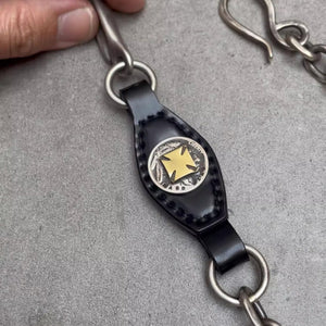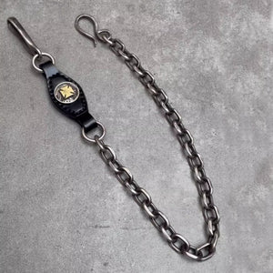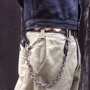 BikerStore Retro Motorcycle Horsehide and 925 Silver Pants Chain with Five-Cent Coin - Malaysia Exclusive