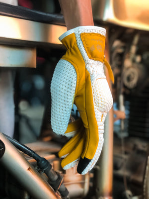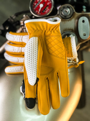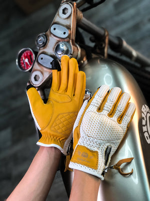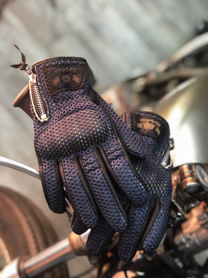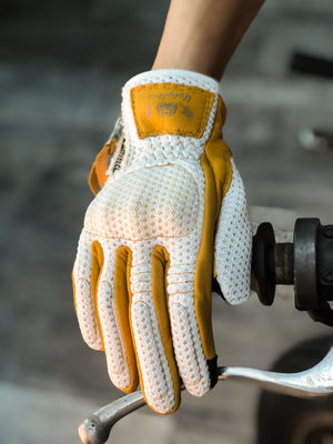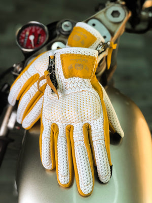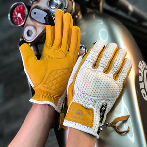BikerStore Retro Summer Motorcycle Gloves - Sheepskin and Mesh, Built-in Soft Shell, Impact Resistant