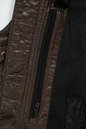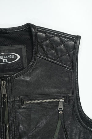 Premium Design Features: Crafted with intricate details, including diamond grid shoulder pads and oval back padding, the vest not only enhances style but also provides crucial protection. Leather drawstrings on the waist sides offer adjustable fit, while the inner lining accommodates optional protective gear, ensuring safety on every ride.